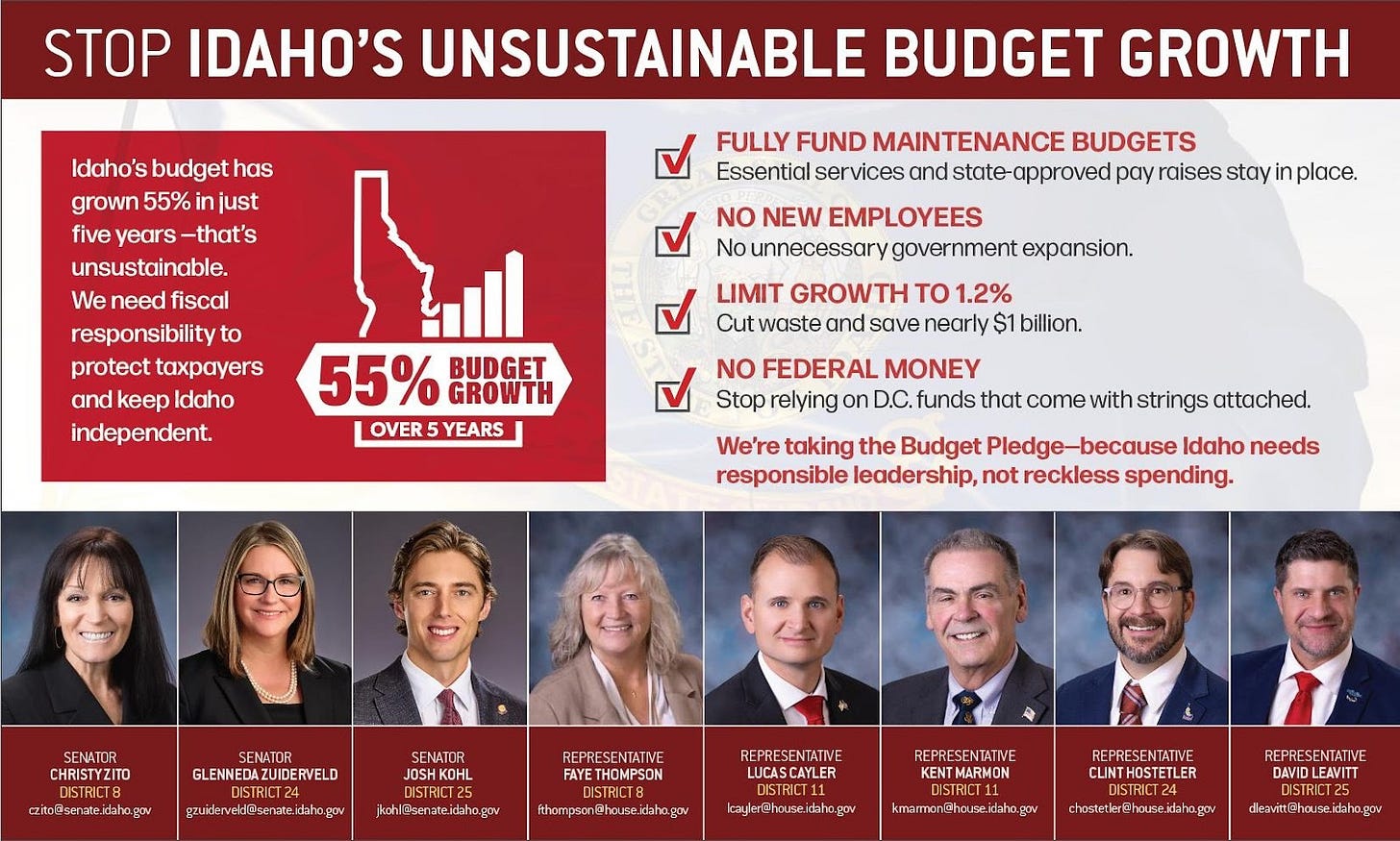 Is it because I honored our pledge and voted against bloated enhancement budgets that would have saved Idaho $1.2 billion and prevented the deficit we are now heading toward in 2026?
